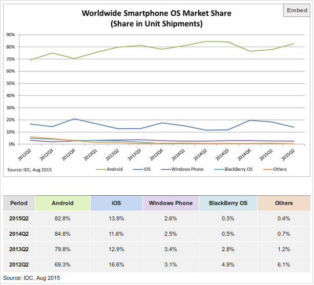 | Relatoriu Husi IDC – Smartphone OS Market Share 2015 |